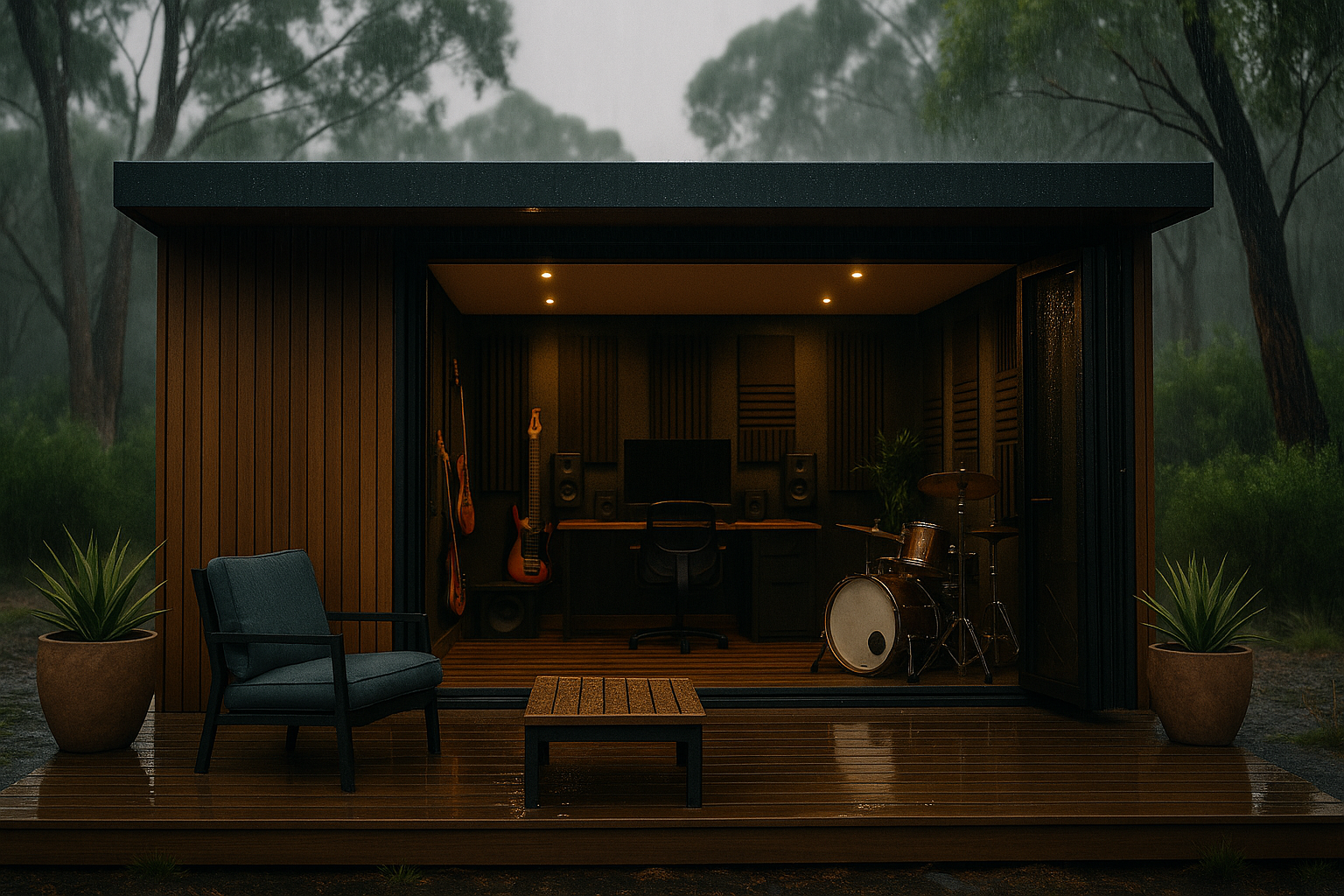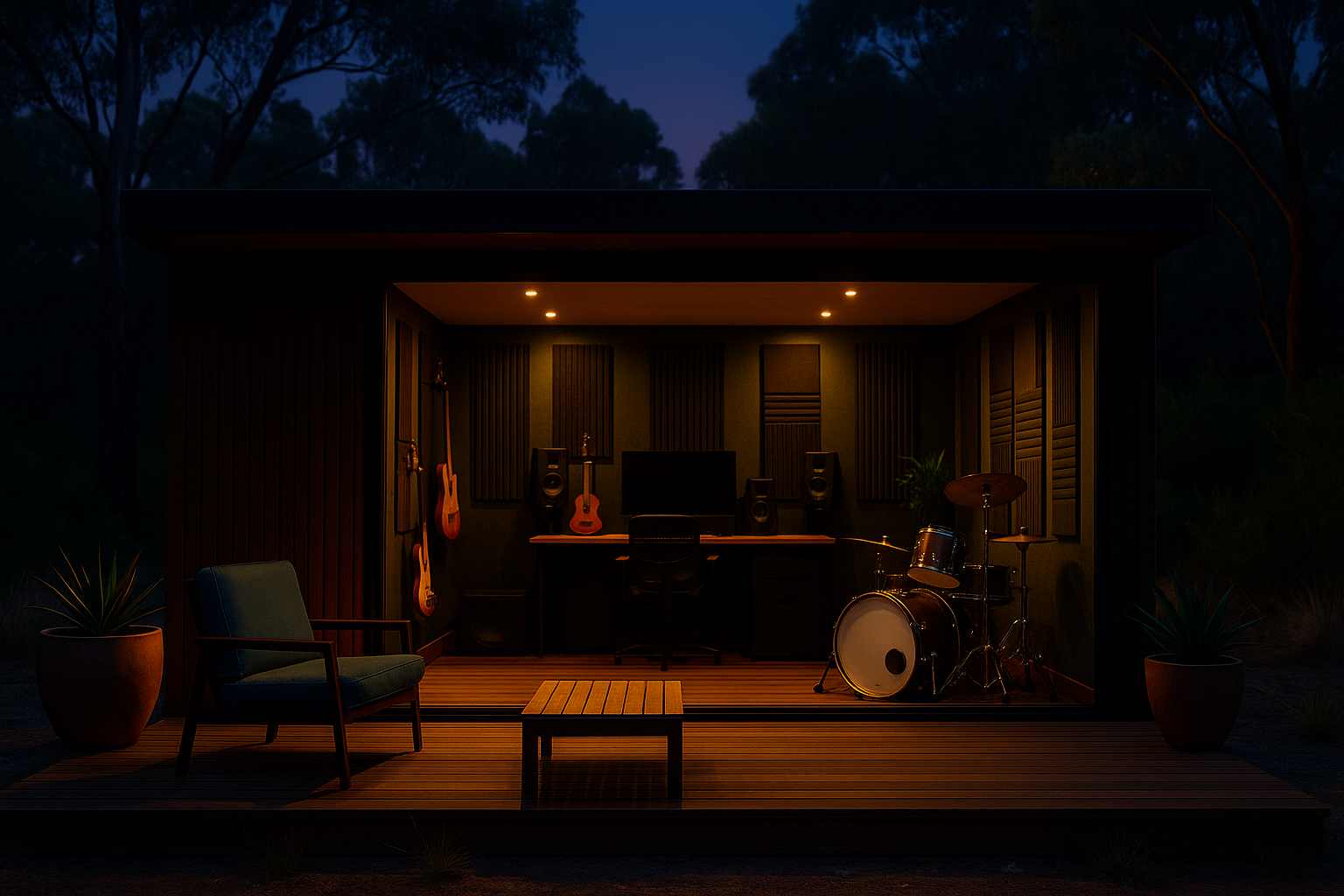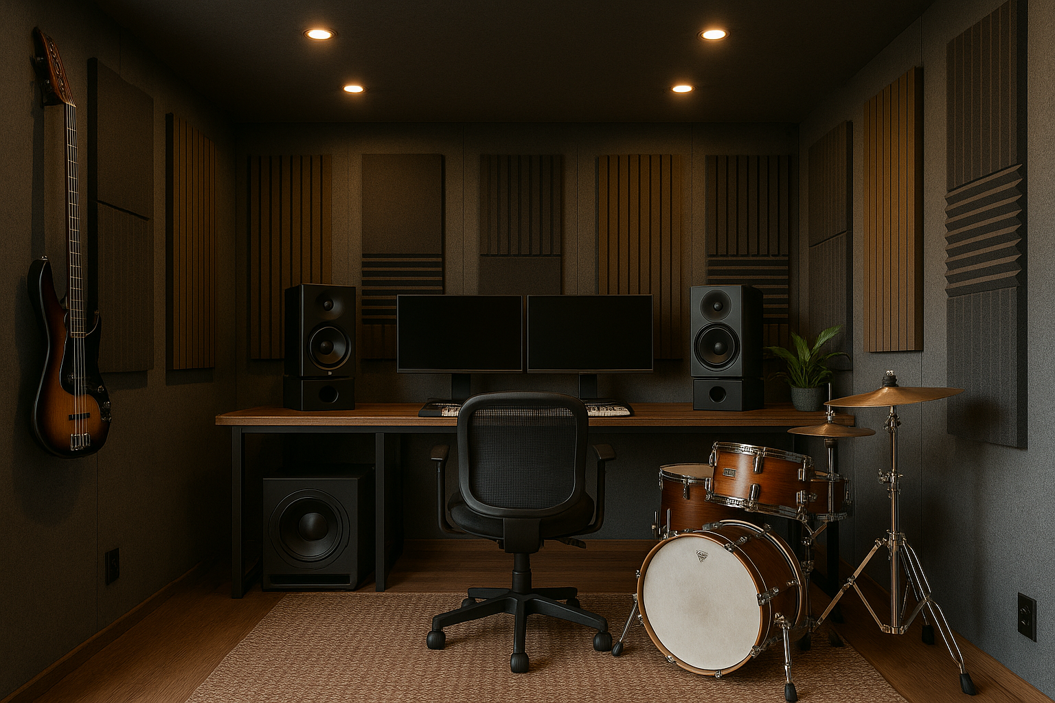 Engineered for clean sound. Decoupled walls, acoustic treatment, and silent ventilation create a quiet, accurate room for recording, mixing, or practice—without shaking the house.